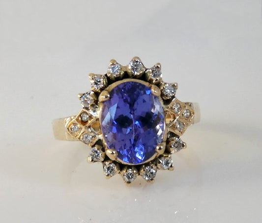 2.39CT CERTIFIED TANZANITE 0.22CT DIAMONDS 14K SOLID YELLOW GOLD RING