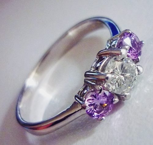 0.36CT CERTIFIED NATURAL DIAMOND & 0.32CT NATURAL PINK SAPPHIRES TRILOGY 18K SOLID WHITE GOLD RING $3200