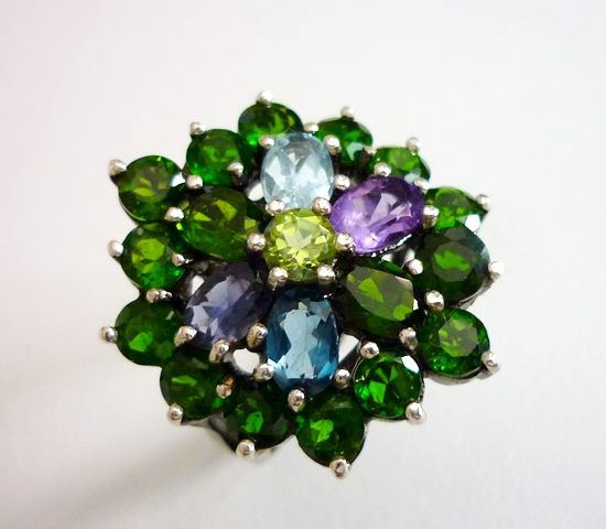 42.50CT STUNNING CHROME DIOPSIDE AMETHYST IOLITE TOPAZ 925 SILVER RING