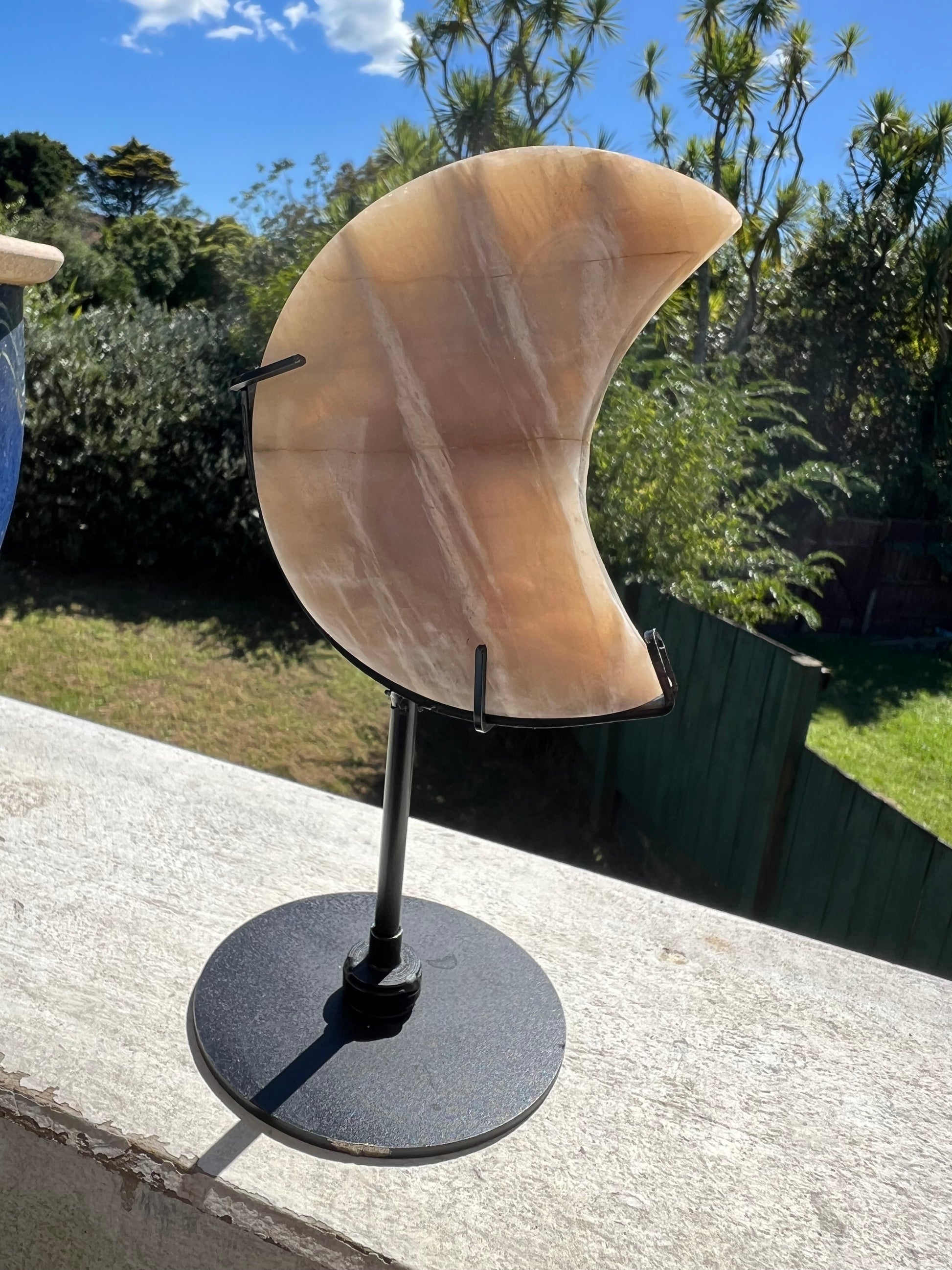 BEAUTIFUL FLASH MOONSTONE MOON SHAPE WITH STAND 348G